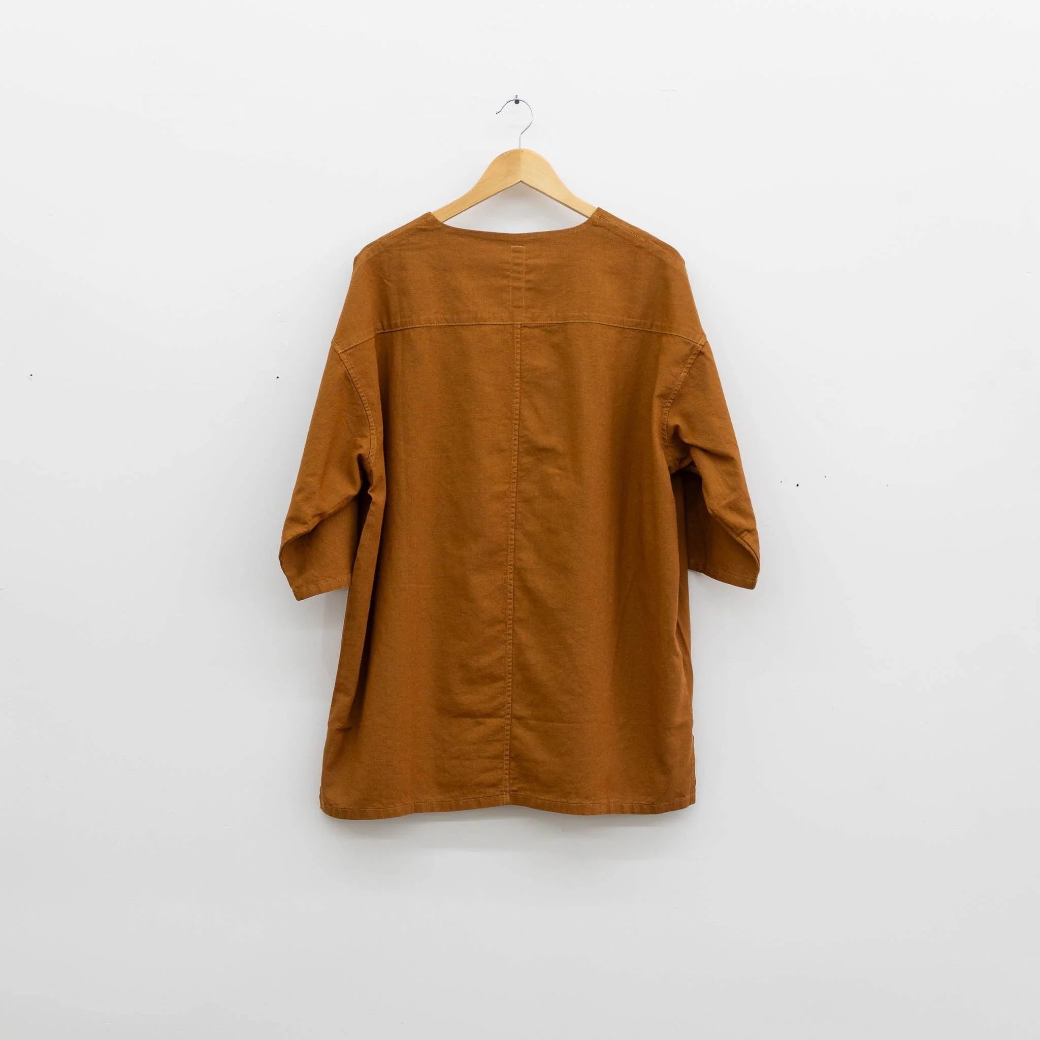 Inspired by traditional 'Jinbei,' loungewear worn during the warmest months in Japan, the Jin Shirt is a collarless oversized unisex button-up shirt with a boxy, loose fit. Made in a crisp linen and cotton blend, it is ideal for staying cool in the spring and summer.